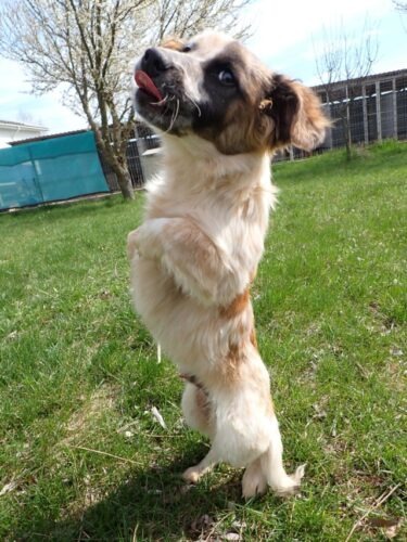 Nos chiots cohabitent avec d’autres chiens, mais ne côtoient pas d’enfants ou de chats au refuge ; au vu de leur jeune âge, nous n’effectuons pas de test chat avec eux puisque nous partons du principe qu’en les sociabilisant correctement, ils peuvent tout à fait s’habituer à la vie de famille avec différentes espèces. C’est à vous de leur apprendre à vivre en harmonie avec vos autres animaux et vos enfants, qui doivent se montrer respectueux à l’égard du nouveau venu. Une cohabitation saine et apaisée met plusieurs semaines, voire mois à se mettre en place. Patience est de mise pour que tout le monde trouve sa place.