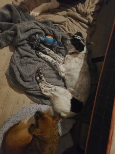 Caractère : 14 novembre 2025 : Tripoli, un concentré de joie, d’amour, de gentillesse, de résilience et bonheur. En moins de 3 semaines, elle est devenue une petite chienne joyeuse, toujours gaie, joueuse qui vient réclamer de l’attention. Elle est vive mais pas brute, elle est délicate comme petite puce. Elle est aussi très expressive et communique avec des gémissement, elle est facile à comprendre pour l’aider si quelque chose lui fait peur. La confiance s’est très vite mise en place. Elle dors à présent sur le côté sereinement C’est une chienne très attachante. Niveau propreté, elle a vite compris et fait dans le jardin. La prochaine étape c’est la découverte du monde extérieur