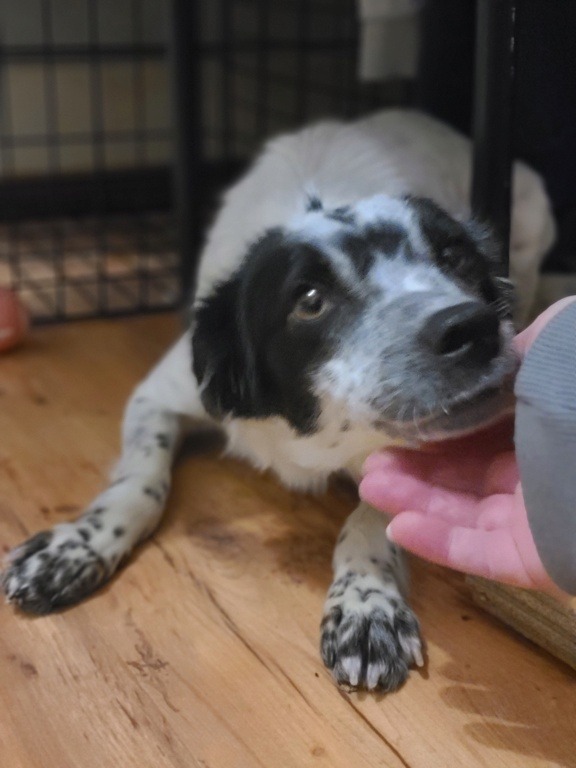 Caractère : 14 novembre 2025 : Tripoli, un concentré de joie, d’amour, de gentillesse, de résilience et bonheur. En moins de 3 semaines, elle est devenue une petite chienne joyeuse, toujours gaie, joueuse qui vient réclamer de l’attention. Elle est vive mais pas brute, elle est délicate comme petite puce. Elle est aussi très expressive et communique avec des gémissement, elle est facile à comprendre pour l’aider si quelque chose lui fait peur. La confiance s’est très vite mise en place. Elle dors à présent sur le côté sereinement C’est une chienne très attachante. Niveau propreté, elle a vite compris et fait dans le jardin. La prochaine étape c’est la découverte du monde extérieur