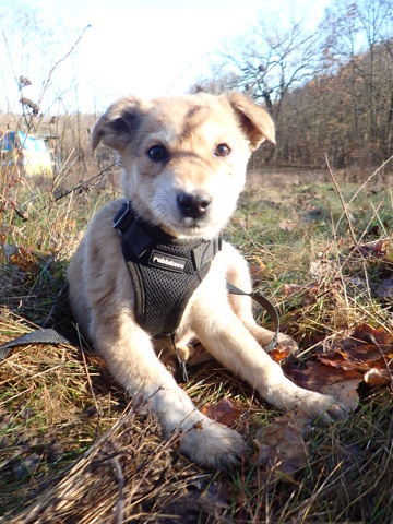 Histoire : trouvée errante avec ses frère Maddox et Maki et sa soeur Vidora. Ce sont les petits chiots « parapluie » abandonnés seuls dans la forêt