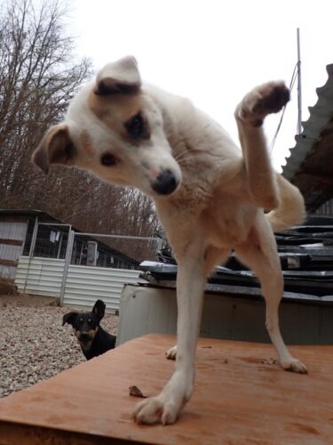Ententes : Cohabite avec les chiens de son box/enclos (cela ne veut pas dire qu’elle s’entendra obligatoirement avec tous les canidés ; chaque animal a ses têtes et ses affinités). Ne pourra pas être placée dans un foyer avec des enfants en bas-âge. N’étant pas manipulable pour le moment, il nous est impossible d’effectuer un test chat sécuritaire pour le félin.